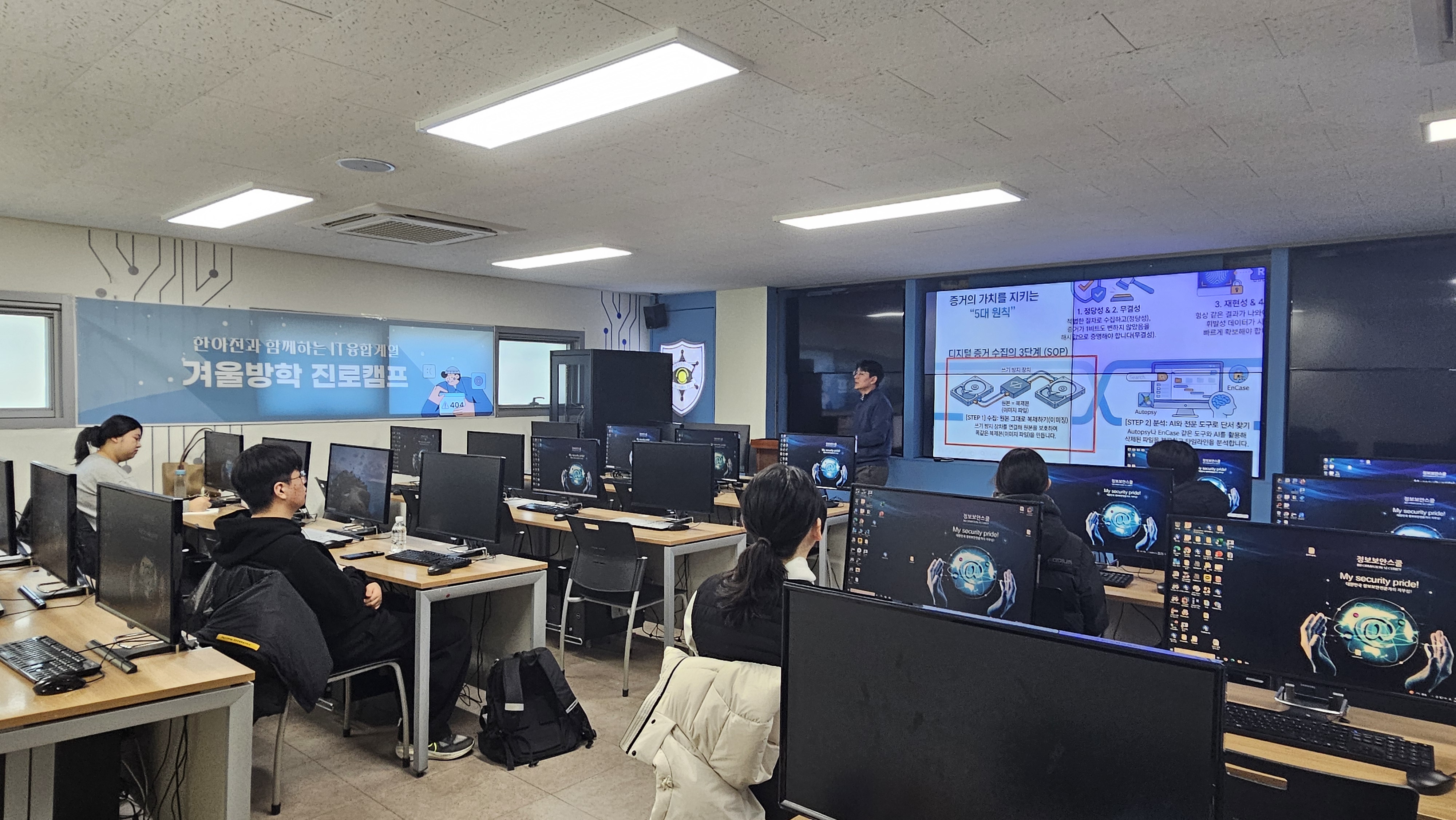 이번 여름방학 진로캠프에서는 디지털포렌식 센터를 활용해 해킹 및 사이버 수사 실습을 하기도 했습니다.
