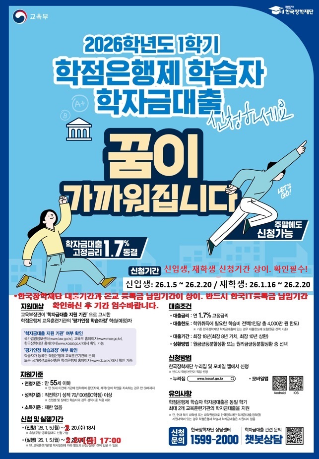 - 2026학년도 1학기 한국장학재단 등록금 대출기간 및 절차 안내 -