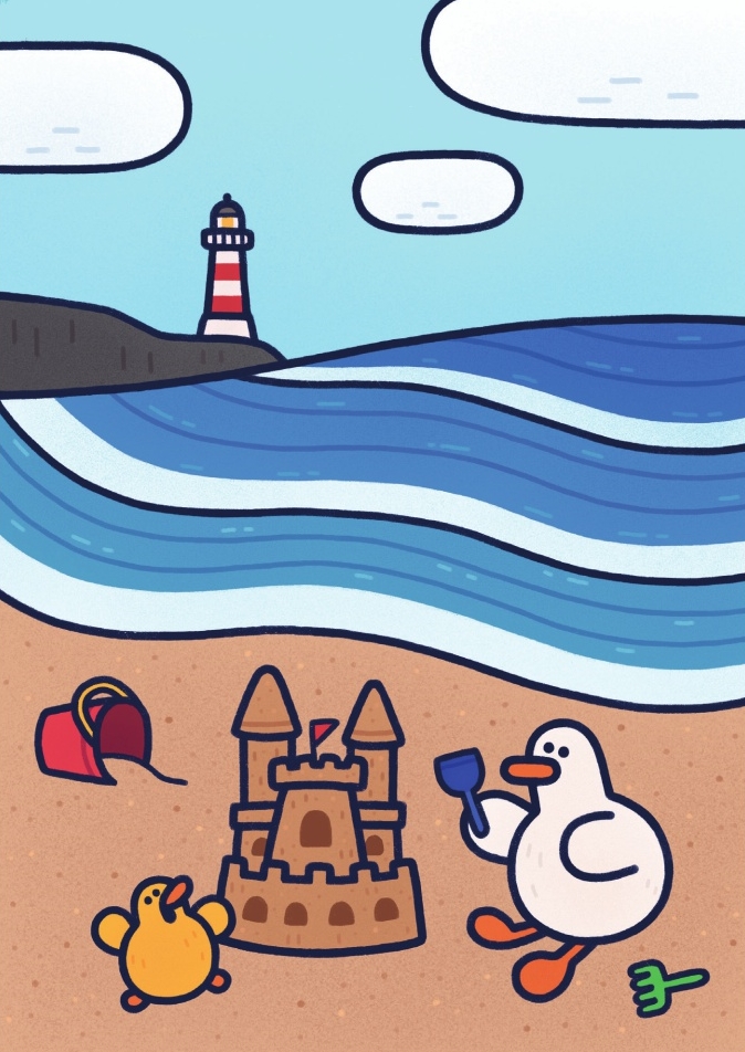 작품 설명 : 여름을 맞이하며 도시를 벗어나 시원한 바다를 만끽하며 즐거운 시간을 보내는 오리를 캐릭터화하였다.