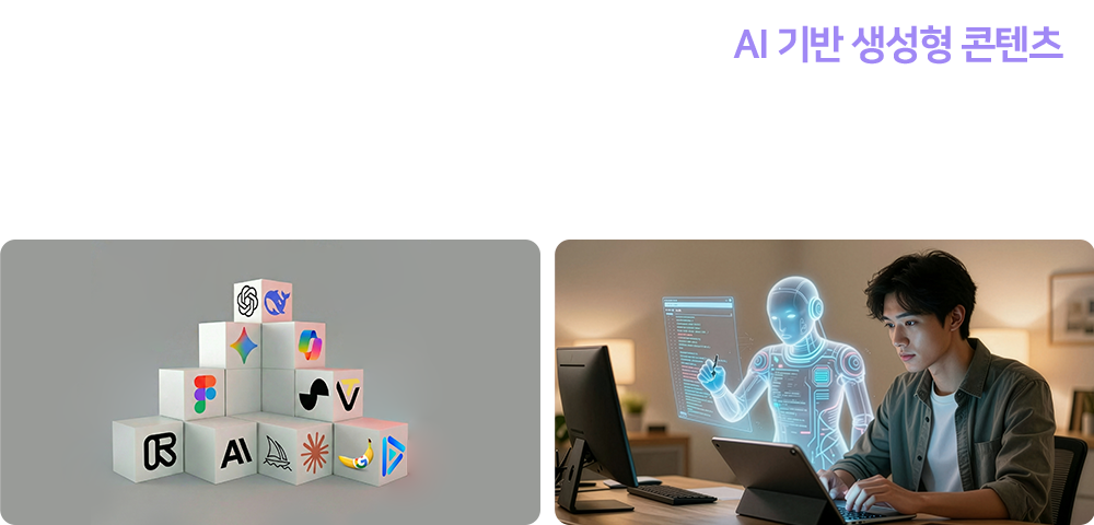 단순한 3D 모델링이나 영상 편집을 넘어, AI 기반 디자인 프로세스를 학습합니다. AI 툴을 활용해 아이디어 구상 시간을 획기적으로 단축하고, 시각화 작업에 집중하여 결과물의 완성도를 극대화할 수 있습니다.