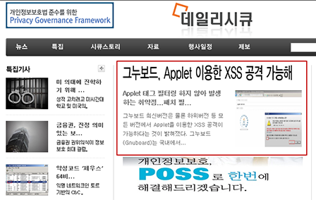 김명용 이사장,‘평생교육 유공자’ 교육부 장관표창 2014-02-14 조회수 15766 그누보드 모든 버전, Applet 이용한 XSS 공격 가능해 2013-12-18 조회수 16316 한국IT, 2013년 학점은행제 우수기관으로 선정 2013-11-26 조회수 31329 정보보안산업기사 대거 합격 2016-05-09 조회수 6173 한국IT직업전문학교 인터넷창업전공, 하라헤드쿼터스와 MOU 체결 2016-05-10 조회수 4740 EBS라디오 [이 길에 꿈이있다]코너 출연 2007-02-05 조회수 3458