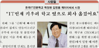 실무 교육의 메카 한국 IT 전문학교 2006-05-09 조회수 3668 IT인재 키우려 학교옆으로 회사옮겼어요 2006-03-26 조회수 3612 정보화사회의 인재육성 2006-03-26 조회수 3719