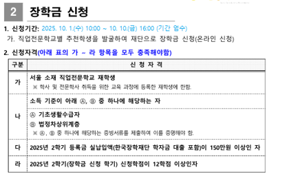 - 결과발표일 : 2025년 11월 초(예정) 신청자 대상 장학금선정결과안내(SMS)