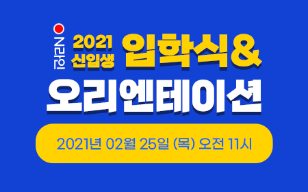 새 학기 신입생 맞이 2021-03-08 조회수 47266 2022학년도 1:1 맞춤 프리미엄 입시설명회 2021-03-04 조회수 48024 2021년도 입학식&오리엔테이션 2021-02-26 조회수 44148 즐거운 명절 보내세요 2021-02-10 조회수 47568 2021년 제18회 학위수여식 2021-02-09 조회수 48462 2021학년도 신입생 입학식&오리텐테이션 2021-02-09 조회수 50878